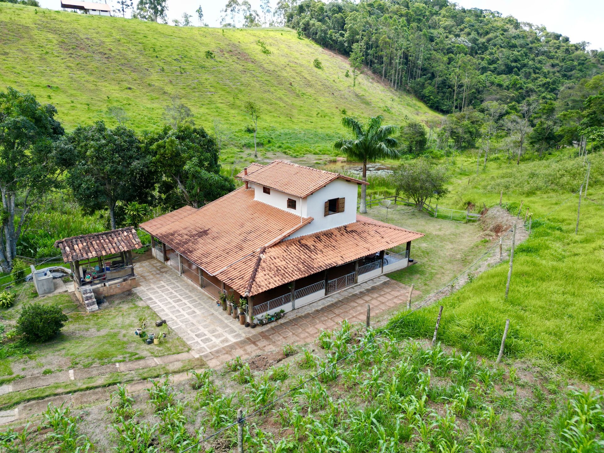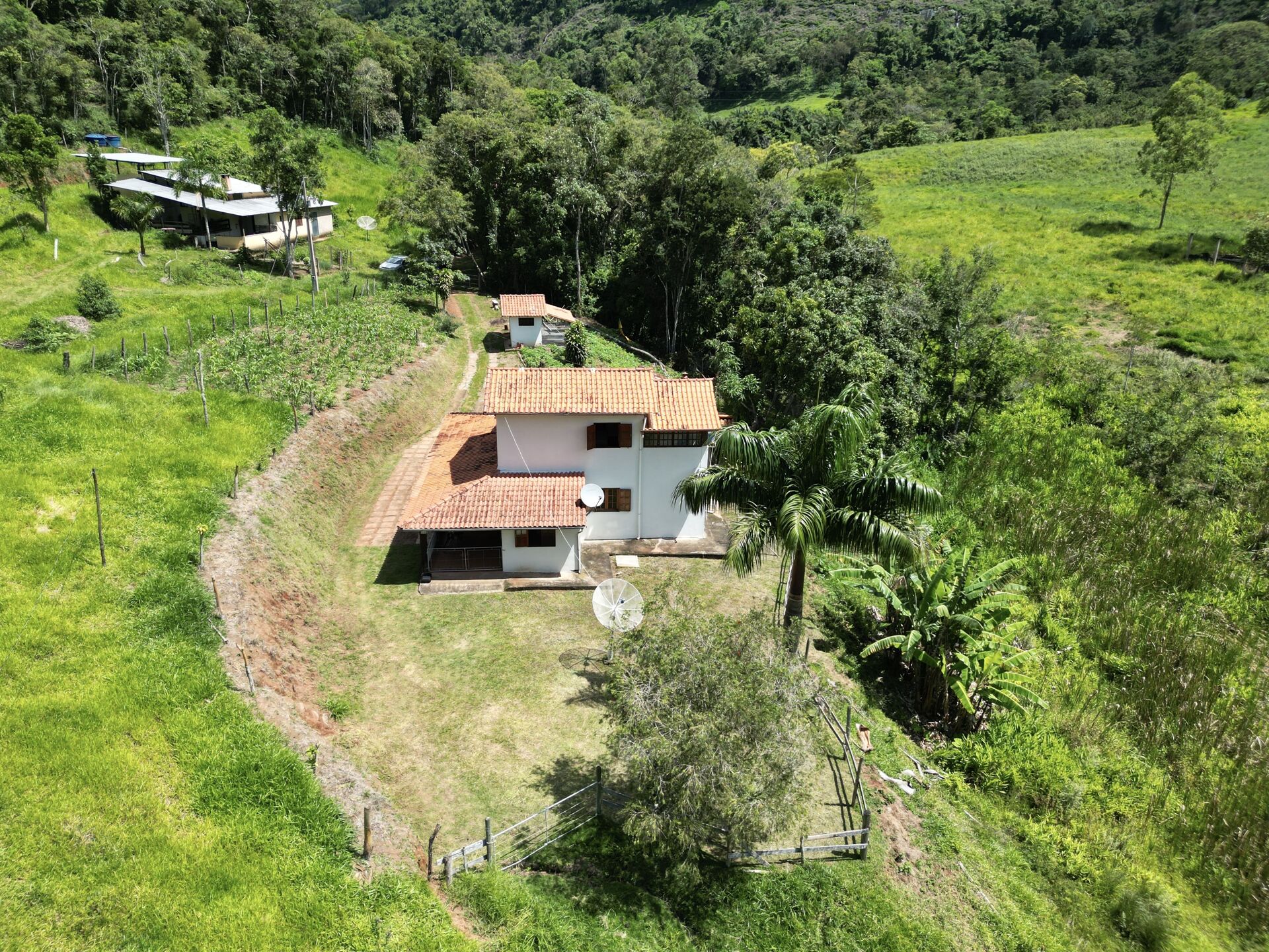 Casa principal com 4 dormitórios, incluindo 1 suíte, e 2 banheiros sociais, sala, cozinha, varanda em torno de toda a casa. Está propriedade oferece espaço e conforto para toda a família. O terreno possui uma área total de 14 hectares, proporcionando privacidade e tranquilidade em meio à natureza.